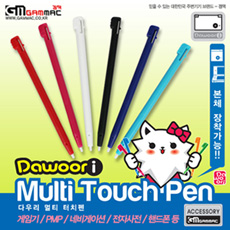 안녕하세요 2010년 5월DSi 다우리 터치펜(Dawoori Multi Touch Pen)을 선보입니다. DSi 및 기존 DSL 터치스크린에 사용하기 적합한 터치펜으로써 터치스크린을 사용하는 거의 모든 디지털제품에 사용이 가능합니다. 또한 소프트 터치로 스크래치로부터 자유로우며 그립감 향상으로 더욱 세밀한 터치가 가능해집니다. 가장큰 장점으로 DSi/DSL 기기에 공용 제품으로써 두기기에 모두 본체 장착이 가능합니다. 제품은 색상별로 총 6개로 구성하여, 골라쓰는 재미를 느낄 수 있습니다. ★ 겜맥에서 처음선보이는 토종캐릭터 '다우리(Dawoori)'는 강아지(종:포메라니언)를 의인화한 캐릭터입니다. 한국에서는 오래전부터 애완견으로 많은 사랑을 받아온 동물로써 금번 발매되는 겜맥의 게임 주변기기에 남녀노소 좋아할만한 멋진 캐릭터로 거듭났습니다. 많은 사랑 부탁드립니다.^^ ★ 패키지 내용 - DSi/DSL 공용 터치펜(레드/핑크/화이트/블랙/블루/라이트블루 각1) 총6개입