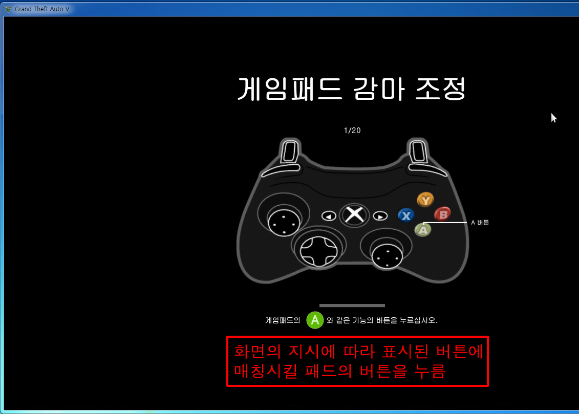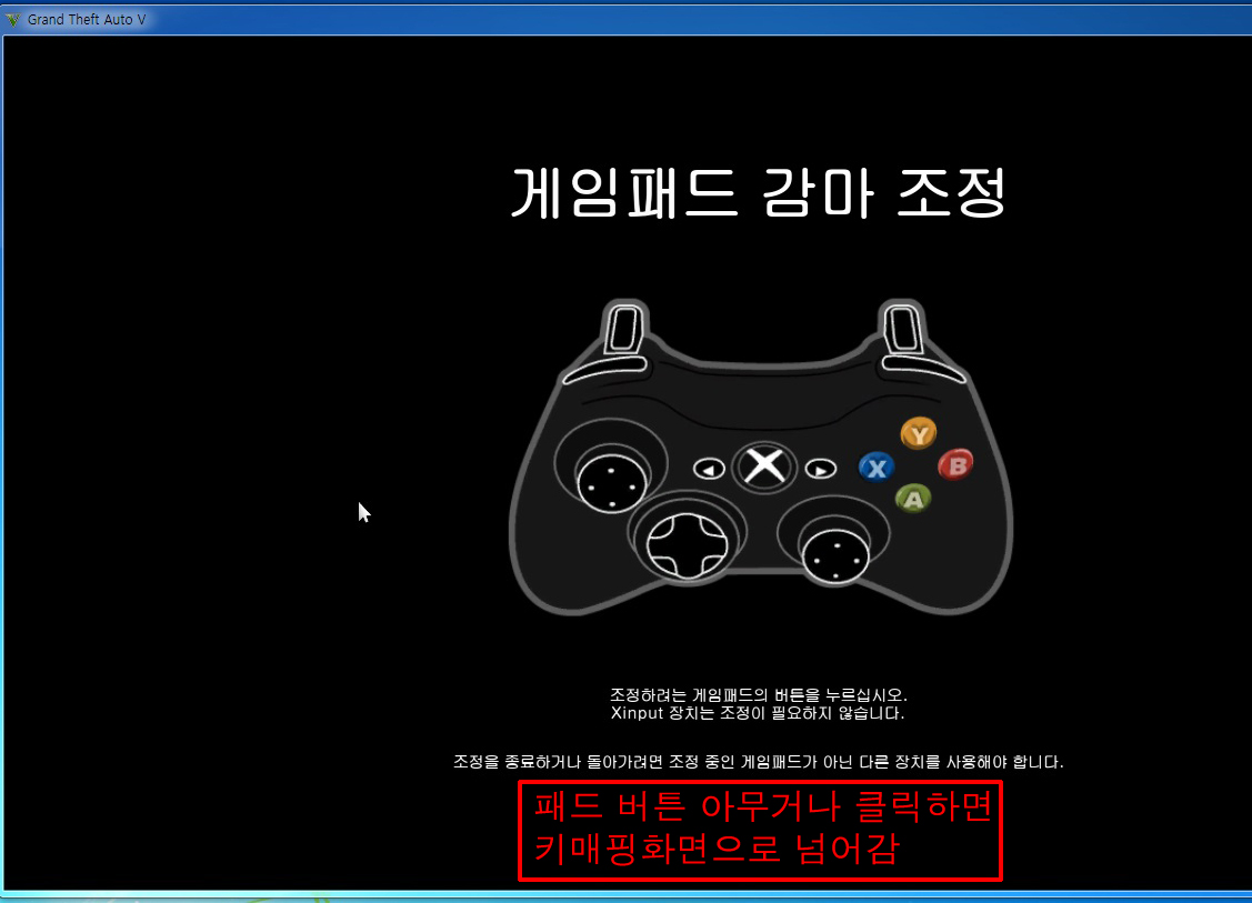 옵션 -> 설정-> 게임패드 -> 게임패드 감마조정 선택합니다.