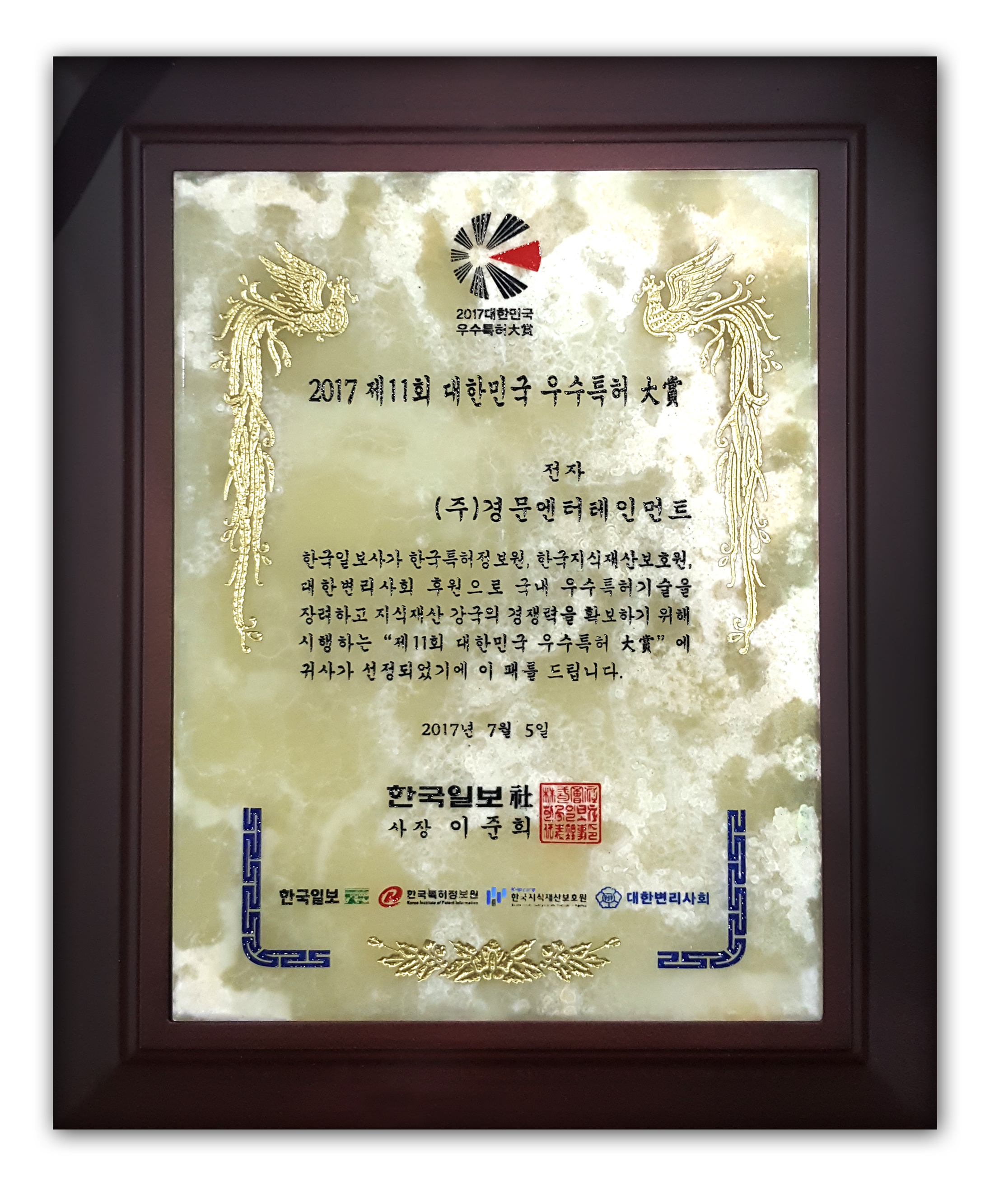 [2017 상반기 대한민국 우수특허대상] 경문엔터테인먼트 관리자 2017-07-10