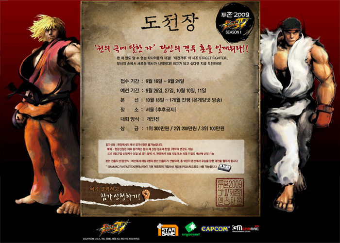 오는 9월 26일부터 치뤄지는 ‘스트리트파이터 IV’  “NSTARGAME 투혼 2009 ‘SF IV’ 시즌 1”의