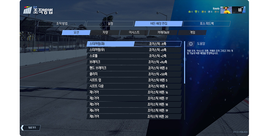 [버튼 배정 편집 - 모션 탭]