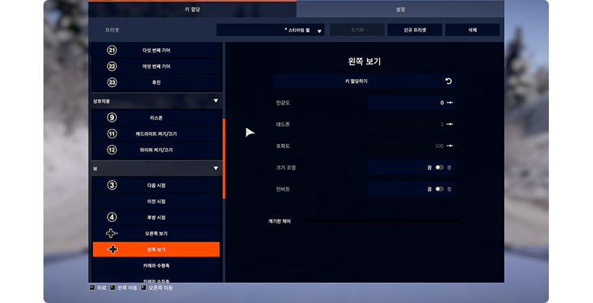 각 기능마다 엘리트 휠을 사용하여 키 할당해 주세요.