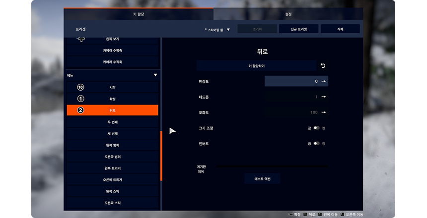 각 기능마다 엘리트 휠을 사용하여 키 할당해 주세요.