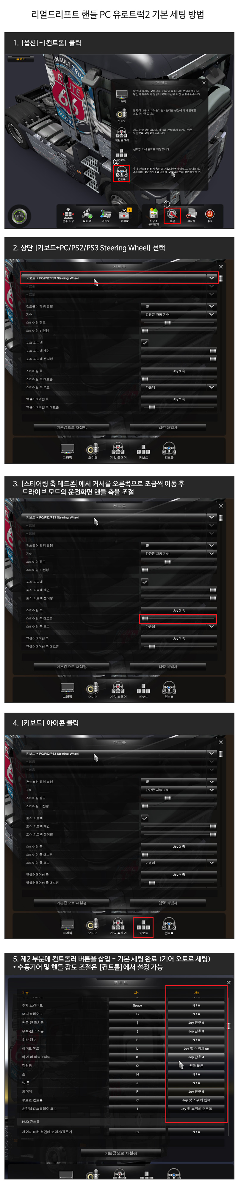 리얼드리프트 핸들 PC게임 유로트럭2 호환 기본세팅법 관리자 2020-08-06