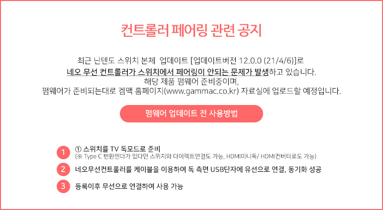 네오 무선 컨트롤러 스위치 업데이트 이후 연결 방법 관리자 2021-04-08