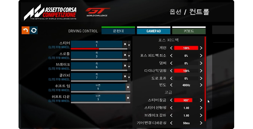 | 엘리트 레이싱 휠 아세토 코르사 컴페티지오네 설정방법 | 관리자 | 2023-08-08 |