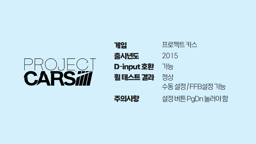 ![]() 즐거운 레이싱 게임의 필수품! 엘리트 레이싱 휠을 프로젝트 카스에서 즐기기 위해서는 다음과 같은 몇 가지 수동 설정이 필요합니다.