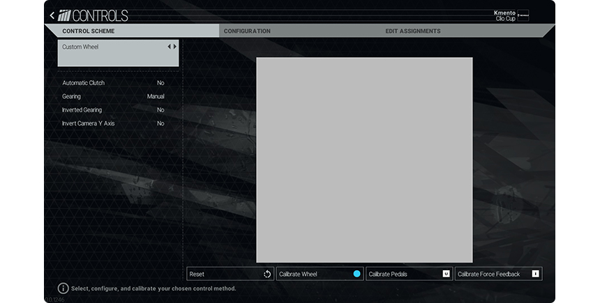 ![]() 마우스로 설정 ![]() 엘리트 휠로 설정 ![]() 오토매틱 클러치 "No" 선택 ![]() 화면 하단의 휠, 페달 설정 ![]() ![]() 모든 설정 후 좌측 상단의 “<” 버튼을 눌러 게임화면으로 돌아갑니다.