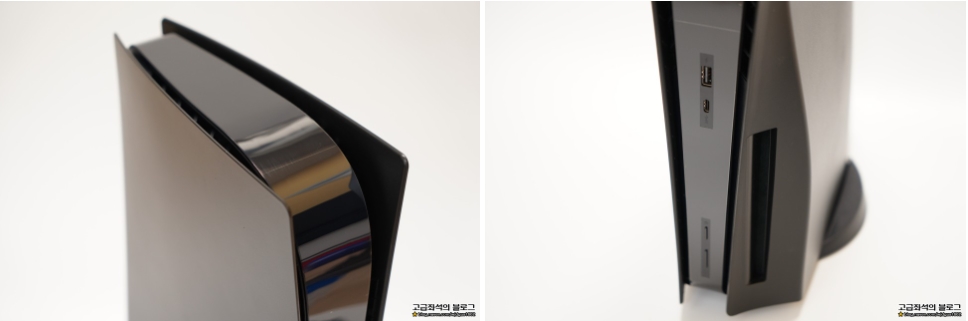 다시 좌우 사이드 패널을 장착해주었습니다! 이로써 좌우 패널은 스크레치가 발생하거나 손상될 경우 구매해서 쉽게 교체가 가능하고, 중앙 유광 바디 부분도 보호필름으로 생활 스크레치나 먼지등을 방지할 수 있기 때문에 소중한 PS5를 오래오래 사용이 가능할 듯 했습니다!
