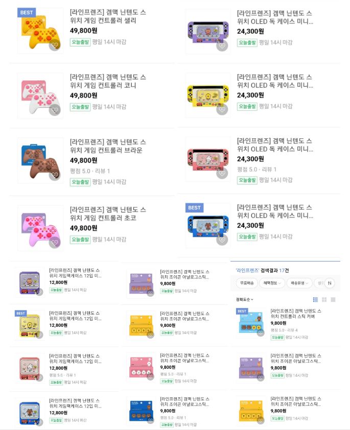 | [라인프렌즈] 겜맥 닌텐도 악세사리 샐리 세트 (케이스, 컨트롤러, 게임칩, 조이콘커버, 컨트롤러 커버) | 라다*림 | 2023-07-17 |