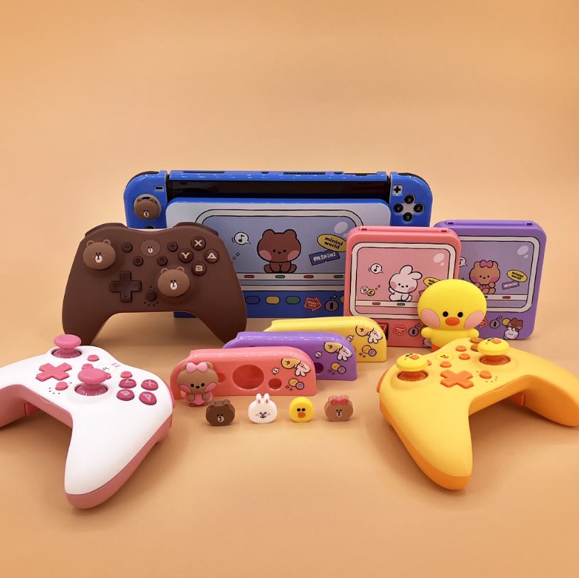뭔가 대단히 굉장하게도 다양한 아이템들이 풀 세트로 모여있는 본 제품은 겜맥의 라인프렌즈 NINTENDO SWITCH 주변기기로 국내에서는 너무나 높은 인기를 구사하는 캐릭터를 내세워 다양한 제품군을 선보이고 있다. 여성분들 중 LINE FRIENDS를 싫어하시는 분이 계실까 싶은 일종의 치트키라 할까 ㅋㅋ 컨트롤러, 독 케이스, 조이콘 커버, 팩 케이스, 그립 캡까지 할 수 있는 건 다 준비했으니 마음에 드는 부분들만 쏙쏙 사용해도 무방하니 하나씩 살펴보도록 하자.