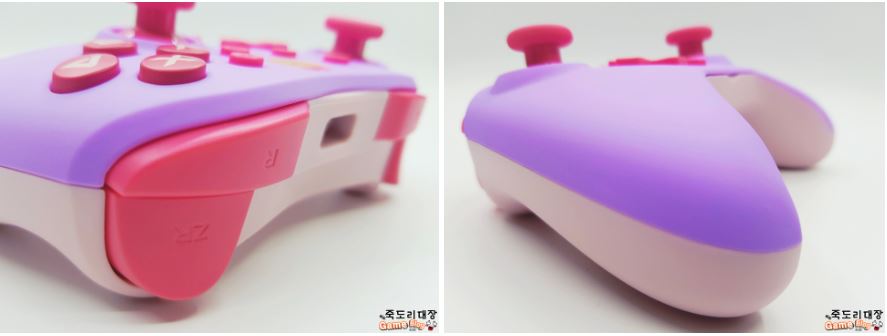 전체적으로 아날로그 스틱과 D 패드의 감도는 고급 라인업의 중간 정도이며, 액션 버튼도 나름 탄성이 있는데, 개인적으로 조금 놀랐던 부분이 트리거의 탄성과 쫀쫀함은 실제 프로콘 오리지널과 비교해 살짝 더 L / R는 가볍고 딸각 소리가 있지만 ZL / ZR은 일단 누름을 통한 손맛? 좀 고급 진 부드러움이 있다고 할까 이 부분은 굉장히 만족스러운 요소라 만듦새와 마감은 정말 괜찮다고 할 수 있겠다.