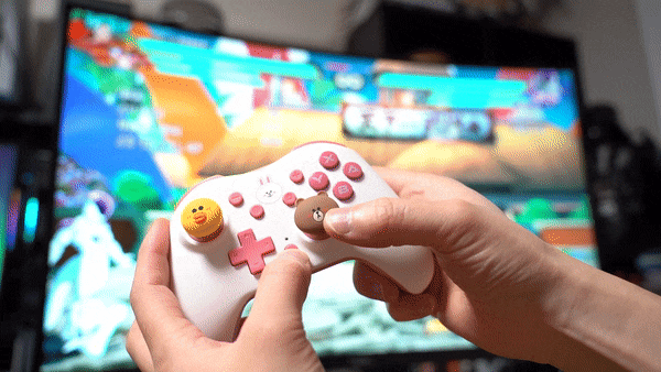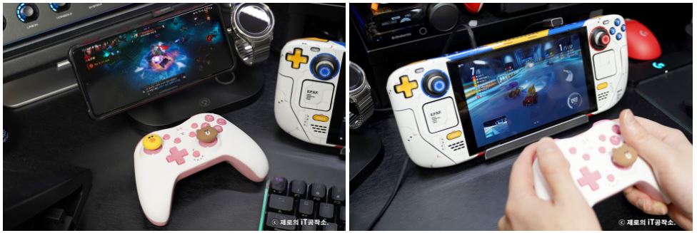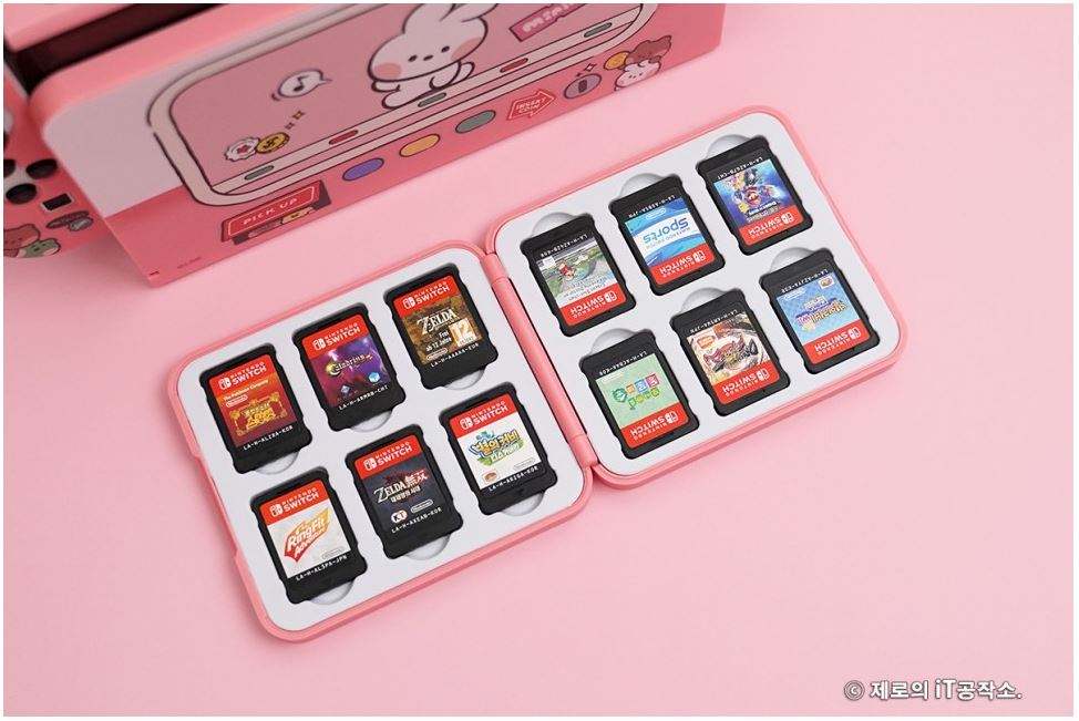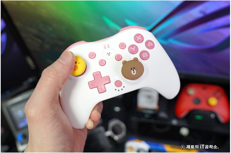 다양한 종류들이 치열한 경쟁을 하고 있는 시장이기도 합니다. ![]() 이에 겜맥은 보다 경쟁력을 갖추기 위해 라인 프렌즈와 콜라보 하여 그들만의 매력을 담은 귀여운 모습으로 다양한 악세사리를 내놓았는데요. 케이스부터 무선 컨트롤러까지 닌텐도 스위치 OLED 악세사리 올인원 솔루션 소개해 드립니다. ![]() NINTENDO SWITCH OLED ACCESSORIES GAMMAC LINE FRIENDS EDITION. ![]() ![]() 이번 겜맥 라인 프렌즈 에디션은 닌텐도 스위치 OLED를 위한 올인원 악세사리로써 보호 케이스부터 TV 독 케이스, 게임칩 케이스, 무선 컨트롤러, 스틱 커버까지 관련 모든 구성을 준비하였습니다. ![]() 물론 개별 구매가 가능한 형태이며 리뷰로 준비한 코니니 이외에도 라인 프렌즈의 인기 캐릭터인 브라운, 코니, 샐리, 초코, 브니니, 샐리니, 초니니도 있어 개성에 맞게 꾸밀 수 있습니다. ![]() 그중에서도 닌텐도 스위치 OLED를 구매하면 가장 먼저 고민하게 될 보호 케이스부터 귀염포텐 마구 터지는 디자인을 자랑하는데요. 토끼 캐릭터인 코니니 버전은 핑크 컬러로 되어 있어 특히 여성분들에게 사랑받을 디자인입니다. ![]() ![]() 본체부터 조이콘까지 풀 커버 보호되는 것은 기본 깔끔하고 정확한 마감까지 군더더기 없는 퀄리티를 자랑하며 커버를 씌우고 난 뒤에도 조작성, 기능성 차이 없이 사용할 수 있습니다. ![]() ![]() 또한 닌텐도 스위치 OLED만의 기능인 프리 스톱 힌지 부분까지 덮개를 적용하여 (붙어있는 것은 아님) 어색한 부분 없이 라인 프렌즈만의 디자인을 누릴 수 있고요. ![]() 조이콘 커버 역시 탄력 있는 PVC 소재를 사용하여 장시간 사용해도 늘어나거나 벗겨지는 현상이 없으며 유광 코팅, 그립 디자인을 적용하여 조이콘의 단점인 그립감도 개선해 줍니다. ![]() 닌텐도 스위치 TV 독 역시 빼놓을 수 없는 필수 구성인데요. 이를 위한 전용 커버도 있어 본체와 함께 제대로 된 깔 맞춤 세팅을 할 수 있습니다. ![]() 얇은 닌텐도 스위치 OLED 케이스 덕분에 TV 독과 그대로 혼용 가능한 것은 덤! 오히려 없을 때 보다 유격 없이 딱 맞아서 더 마음에 들었네요. ![]() ![]() 닌텐도 스위치를 사용하다 보면 하나둘 증식하는 게임칩(게임팩)의 보관도 번거로워질 때가 오게 되는데요. 이를 위한 전용 케이스까지 있어 최대 12개의 타이틀을 간편하게 보관이 가능합니다. 디자인도 라인 프렌즈 에디션답게 투박하지 않아 휴대하기에도 좋습니다. ![]() ![]() 아직 만족하기엔 이릅니다. 겜맥은 무선 컨트롤러까지 라인 프렌즈 에디션으로 출시하였는데요. 사이즈도 기본 게임패드에 비해 작고 가볍게 제작하여 어른 못지않게 많은 어린 유저층을 가진 닌텐도 스위치를 위해 오랜 시간 사용해도 부담 없이 즐길 수 있는 환경을 제공해 줍니다. 또한 마찰력 높은 스틱, 인체공학 그립 디자인 등을 적용하여 무선 컨트롤러로써 기본적으로 갖추어야 할 요소들도 훌륭하고요. ![]() 닌텐도 스위치에 맞춰 설계된 무선 컨트롤러인 만큼 스크린샷, 깨우기 기능은 기본 NFC까지 내장하여 아미보 인식 기능까지 탑재하고 있습니다. ![]() ![]() 또한 상단 트리거 레버, 버튼, C 타입 충전 포트, 배면 매크로 버튼까지 작지만 어지간한 일반 게임패드에 못지않은 기능들을 빠짐없이 갖추고 있죠. (트리거 레버는 원클릭 방식) ![]() 자석으로 고정된 커버 분리 기믹도 내장하여 다른 종류의 라인 프렌즈 무선 컨트롤러를 추가로 구매한다면 서로 번갈아가며 좀 더 개성 있는 모습으로 만들 수도 있습니다. ![]() ![]() 여기에 디테일한 모습으로 캐릭터를 형상화한 스틱 커버까지 있어 겜맥 무선 컨트롤러 이외에도 다양한 게임패드에 장착하여 디자인 드레스업과 좀 더 향상된 조작감으로 즐길 수 있게 만들 수 있습니다. 사이즈도 두 가지라 스틱의 종류에 맞춰 사용도 가능하고요. ![]() ![]() ![]() 무선 컨트롤러는 닌텐도 스위치 이외에도 X-INPUT 등을 지원하여 PC, 안드로이드와 블루투스 및 유선으로 연결하여 다양하게 활용이 가능합니다. 배터리 지속시간은 약 20시간으로 여유로운 수준. ● 안드로이드는 블루투스 연결만 가능. ![]() 이 밖에도 배면의 매크로 버튼을 이용하여 필살기와 같은 커맨드 스킬류를 원버튼으로 간단하게 시전이 가능하며 연타가 힘든 L3, R3와 같은 버튼을 맵핑하여 편리하게 사용할 수도 있습니다. ![]() ![]() 3단계로 속도 조절 가능한 터보 기능까지 있어 단순 연타 콤보나 슈팅에서 연사 스킬 같은 손가락의 피로도를 가중시키는 액션을 좀 더 편하게 만들어 줄 수도 있죠. ![]() ![]() 여기에 강도 조절 가능한 듀얼 진동모터까지 탑재하여 정말 작지만 고성능 무선 컨트롤러 부럽지 않은 제품이었는데요. 케이스부터 게임패드까지 구성 하나하나 알찼던 겜맥 라인 프렌즈 닌텐도 스위치 OLED 액세서리였습니다. ![]() 한방에 고민 해결을 위한 추천 겜맥 라인 프렌즈 ![]() ![]() 닌텐도 스위치 OLED를 들여오고 나서 사용했던 액세서리들 돌이켜보면 부위별로 전부 따로 국밥이었습니다. 그렇다 보니 통일성, 호환성 등 부족한 부분들이 몇몇 있을 수밖에 없었지요. 하지만 이번 겜맥의 라인 프렌즈 에디션은 본체부터, TV 독, 조이콘, 게임칩 그리고 무선 컨트롤러까지 모