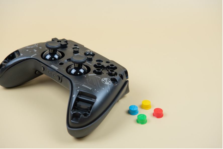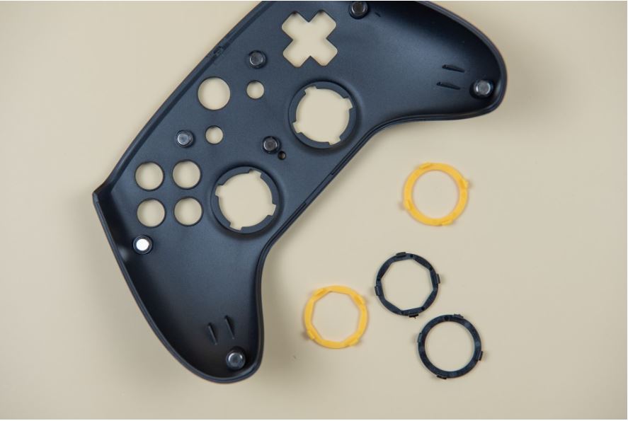 스틱 가이드, 액션 버튼도 분리가 가능하여 원하는 위치로 액션 버튼을 배치하거나 제공되는 다른 종류의 스틱 가이드를 장착해서 사용할 수 있다.