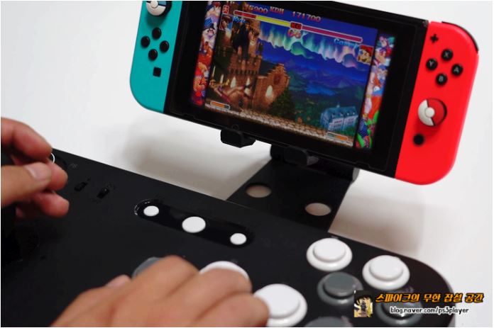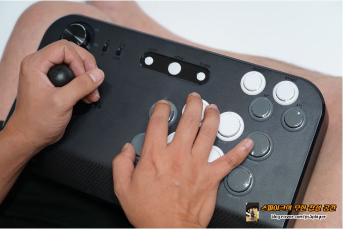 ![]() 아케이드 조이스틱 겜맥 에이펙스 안드로이드 스틱 스트리트 파이터 2를 무선으로! ![]() ![]() 안녕하세요. 영원한 콘솔 게이머 스파이크입니다. 오늘은 겜맥 에이펙스 유무선 아케이드 조이스틱을 소개해볼까 하는데, 제가 그동안 여러 제품을 사용하고 소개를 했지만 무선을 지원하면서 안드로이드 스틱으로 활용 가능한 제품은 이번이 처음인 것 같네요. 콘솔끼리 돌려서 사용할 수 있을 때 범용성을 논하지만 과연 스마트폰, 태블릿 지원만큼 뛰어난 범용성이 있을까요? |겜맥 에이펙스 아케이드 조이스틱 오픈 ![]() 유선 조이스틱은 케이블이 거추장스러운 대신 인풋렉으로 고통받을 일이 없고, 무선 조이스틱은 편리한 대신 인풋렉이 있을 가능성이 큽니다. 그런데 요즘 무선 기술이 워낙 발달해서 정말 민감한 사람이 아닌 이상 이 차이를 체감하기 힘들죠. 게다가 양쪽을 모두 지원해버리면 이는 더이상 단점으로 볼 수 없습니다. ![]() 겜맥 에이펙스 안드로이드 스틱은 양쪽을 모두 지원하며 범용성도 좋아서 대단히 쓸모있단 말씀을 드리고 싶네요. ![]() 박스 전면을 보면 지원 기종이 나와있는데 PS4, 닌텐도 스위치, PC, 안드로이드를 지원하는 것을 알 수 있습니다. 플스쪽이 전세대 지원이라 조금 아쉬운 감이 있지만 만약 PS5 지원이었다면 현재로써 절대 가성비를 맞출 수 없었을 겁니다. 대신 PS5에서 PS4 게임을 구동하면 전부 무난하게 작동하니 여기에 대해선 걱정하지 않으셔도 좋구요. ![]() 구성품은 아케이드 조이스틱 본체와 사용 설명서, USB 동글, 유선 케이블입니다. | 겜맥 에이펙스 안드로이드 스틱 기능 및 디테일 ![]() 우선 외관을 살펴봅니다. 디자인은 전체 블랙에 다소 투박하다고 느껴질 수 있겠지만 모서리에 전부 라운드 처리가 되어서 날카로움이 전혀 없고 마감도 좋습니다. 아이들이 만져도 아무 걱정할 필요가 없겠죠. 사이즈는 약 350 x 200 x 50mm로 타제품만큼 크다고 볼 순 없지만 그만큼 휴대가 편리하다는 이점이 있고 무게는 약 2kg으로 사이즈에 비해서는 꽤 묵직한 편입니다. 이 제품은 콘솔 뿐 아니라 스마트 기기와의 연동도 생각해야 해서 과도하게 키우지 않고 중간 지점을 찾았다는 느낌이 있네요. ![]() 본체 바닥면을 보면 6개의 고무 지지대가 미끄럼 방지 역할을 하고 있는 것을 알 수 있구요. ![]() 레버는 국내에서 가장 널리 쓰이는 무각 가이드가 채용되어서 웬만한 기술은 무리없이 잘 나갑니다. 사탕 레버가 아니라 몽둥이 레버가 채용되어 손에 더욱 감기는 느낌이고, 덕분에 스트리트 파이터 2, 철권 시리즈를 즐기는데 유리해 보이더군요. 개인적으로 버추어 파이터 시리즈는 4각이나 8각이 편했습니다. ![]() 버튼의 탄성도 너무 과하지 않으면서 적절한 느낌. 기본 8버튼 외에도 셀렉트 & 스타트, 매크로 버튼이 들어가서 총 12개의 버튼이 상단에 자리잡고 있는 것을 알 수 있습니다. 겜맥 아케이드 조이스틱은 메크로 입력을 지원하는데, 이는 대전격투 게임에서 자주 사용하는 커맨드를 버튼 하나에 지정함으로써 해당 기술을 쉽게 사용하게 해주는 기능입니다. 사용 방법은 터보 버튼과 매크로 버튼(M1 또는 M2)을 동시에 3초동안 누르고 플랫폼 전환 다이얼에 LED가 들어 오면 기술 입력을 시작, 설정 완료 후 매크로 버튼을 1회 더 눌러주면 됩니다. 해제를 원한다면 기술 입력만 생략 하고 같은 과정을 되풀이해주면 되는데 개인적으로 붕운쌍을 입력해보고 싶었지만 정확한 입력이 좀 어렵네요. ㅎㅎ ![]() 위에서 말씀드린 플랫폼 전환 다이얼입니다. 이 다이얼이 존재함으로써 플스4, 닌텐도 스위치, 안드로이드, PC의 4기종 전환이 매끄럽죠. 자세한 사용 방법은 아래에서 다루기로 하구요. 플랫폼 전환 다이얼의 우측엔 2개의 스위치가 보이는데, 좌측은 레버 입력 변환(+에 맞추면 아날로그 스틱, ○에 맞추면 십자키), 우측은 전원 스위치입니다. 겜맥 에이펙스 아케이드 조이스틱은 무선 제품이라 스위치 ON/OFF가 필수이며 450mAh 배터리가 내장되어서 최대 10시간을 사용할 수 있습니다.(대기 시간은 약 450시간) ![]() 본체 상단 센터에는 시프트, 홈, 터보 버튼이 준비되어 있는데 당연히 터보 기능도 지원됩니다. 사용 방법은 터보 버튼과 원하는 버튼을 동시에 눌러주면 끝~ 1회 클릭 시 수동 연사, 2회 클릭 시 자동 연사, 3회 클릭시 터보가 해제되는 순입니다. 연사 입력은 초당 5회, 12회, 20회의 3단계가 준비되어 있으며 기본은 12회, 만약 낮추고 싶다면 터보 버튼과 레버 ↓를 동시에 누르면 되고, 올리고 싶다면 ↑을 동시에 눌러주면 됩니다. ![]() 아케이드 조이스틱 본체 측면에는 꽤 넓찍한 수납 공간이 준비되어서 뚜껑을 열면 USB 동글과 유선 연결용 케이블이 담겨있는 것을 알 수 있습니다. 필요에 따라 사용해주면 되겠구요. ![]() 후면에는 유선 케이블 연결을 위한 포트가 준비된 것을 알 수 있습니다. 참고로 케이블은 충전 케이블로도 사용되기 때문에 배터리 충전 시에도 이쪽을 통해 연결해주시면 됩니다. 급할 때는 보조 배터리를 써도 작동이 잘 되더군요. | 겜맥 에이펙스 안드로이드 스틱 각 기종 연결 방법 ![]() ▶ 플레이스테이션4 우선 가장 많은 대전격투 게임을 