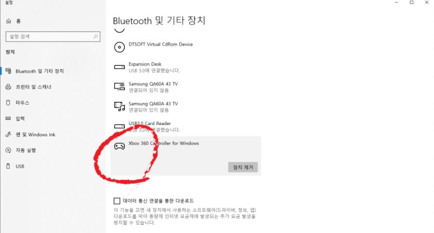 무선으로 연결을 하게 되면 블루투스 및 기타장치에