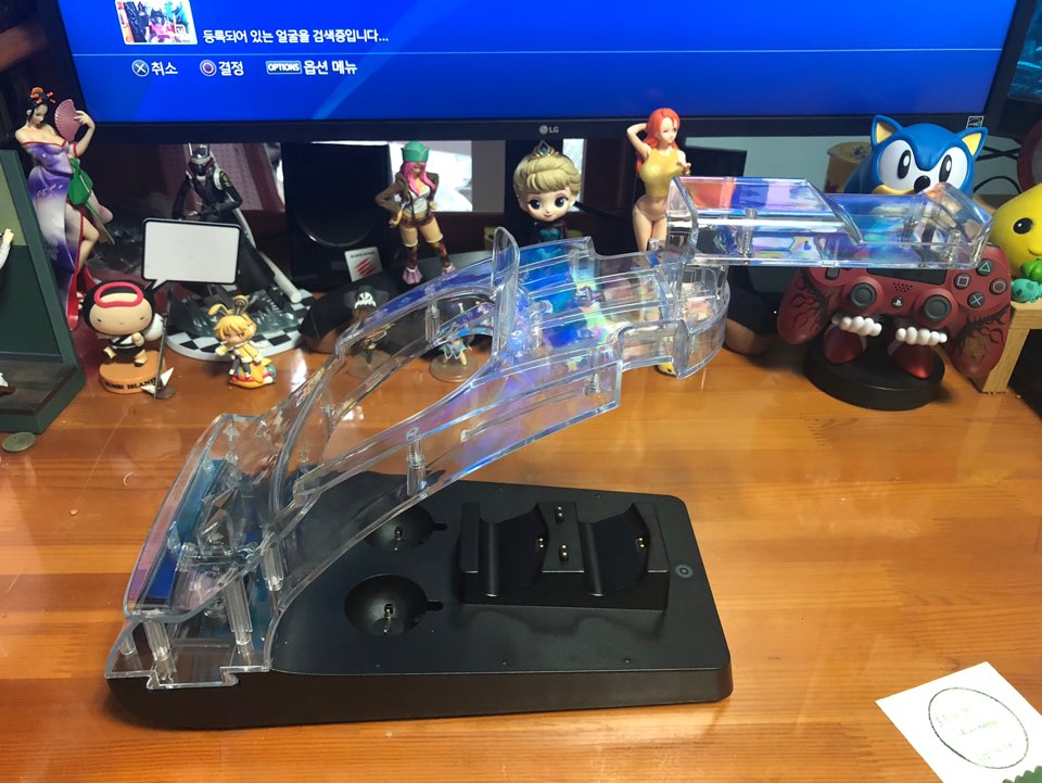 ![]() 겜맥 - VR 하이브리드 거치대 박스 PS4 대표카페인 [PS4와 친구들]에서 진행한 체험단 모집에서 당첨되어서 받은 겜맥사의 VR 하이브리드 거치대 (이하, 겜맥 거치대) 입니다. PS VR을 가지고 계신 분들이 최고로 귀찮고 문제인 건 바로 VR의 관리일 거라고 생각합니다. 그래서 PS4와 같이 거치가 가능한 거치대부터, VR만 거치되는 거치대 등 많은 종류의 거치대가 나왔습니다. 이번에 나오 '겜맥 거치대'는 VR과 함께 PS4의 주변기기를 같이 거치할 수 있는 '종합거치대'로 볼 수 있습니다. 거치대 하나에 PS VR, 무브봉 2개, 듀얼쇼크4 2개, 헤드셋 PS4에 사용하는 거의 모든 주변기기를 거치할 수 있습니다. ![]() ![]() ![]() ![]() 구성품은 단순합니다. 헤드셋 거치대 듀얼쇼크4와 무브봉의 충전단자가 있는 거치대 베이스 전원 케이블과 듀얼쇼크4에 들어가는 충전포트 입니다. 충전포트는 여분 2개 포함 총 4개가 들어있습니다. ![]() 다 조립하게 되면 이런 모양이 됩니다. 조립자체는 쉽습니다. 따로 공구나 볼트가 필요한게 아닌 그냥 위치에 끼우기만 하면 됩니다. 그럼 한번 세세하게 봐볼까요? ![]() ![]() 우선 듀얼쇼크4의 충전위치 입니다. 전체적으로 봤을 때 맨 뒷부분에 있습니다. 구성품으로 들어 있는 충전단자 4개 중 여분인 2개를 넣어둘 수 있죠. ![]() 충전 단자를 듀얼쇼크4에 붙여야 합니다. 연결을 안해도 거치는 가능하지만, 충전이 안됩니다. ![]() 듀얼쇼크4를 거치하면 LED에 불이 들어옵니다. 충전중에는 붉은 빛이 나오며, 충전이 완료되면 사진과 같이 푸른빛이 나옵니다. ![]() 무브봉도 마찬가지 입니다. 좌우에 하나씩 무브봉 충전LED가 있습니다. 마찬가지로 충전중엔 붉은색, 충전 완료시에는 푸른색 입니다. ![]() 전부 거치하게 되면 이런 모습이 됩니다. 무브봉과 듀얼쇼크4는 거치와 함께 충전이 되고, PS VR과 헤드셋은 그저 거치만 가능합니다. 거치대에 푸른 LED가 있는데 이 LED는 ON/OFF가 가능합니다. ![]() 바로 이 버튼으로 LED를 ON/OFF 할 수 있습니다. LED만 ON/OFF될 뿐, 듀얼쇼크4와 무브봉의 충전은 계속 됩니다. 우선 제품의 장점은 단순합니다. 장 점 1. 한번에 모든 주변기기를 거치할 수 있고, 공간활용면에서 좋다. 우선 PS VR을 가지고 계신분들은 기본으로 PS VR과 무브봉2개를 가지고 계실겁니다. 거기에 PS4에 사용할 헤드셋을 가지고 계신분들도 꽤 계시죠. 주변기기를 사는 건 괜찮은데 제일 큰 문제는 바로 '거치'입니다. 저는 옷걸이나 책상에 대충 걸어놨습니다. 헤드셋의 경우 다이소에서 구입할 바나나걸이에 거치해서 썼지만 문제는 공간이죠. 헤드셋과 무브봉, PS VR을 따로 거치하게 되면 공간을 엄청 차지하게 되죠. 겜맥 VR 하이브리드 거치대는 한번에 모든 주변기기를 거치할 수 있으니, 공간활용면에서도 좋죠. 2. 거치와 충전을 한번에 듀얼쇼크4 2개와 무브봉2개를 거치함과 동시에 충전도 가능합니다. 특히 저는 귀차니즘이 심해서, 무브봉이나 듀얼쇼크가 완충되어있는 적이 거의 없어요 ㅋㅋ 쓰기전에 부랴부랴 충전기에 연결해놓던가, 연결해서 사용하죠 ㅎ 거치대는 거치함과 동시에 충전이 되니 편합니다.