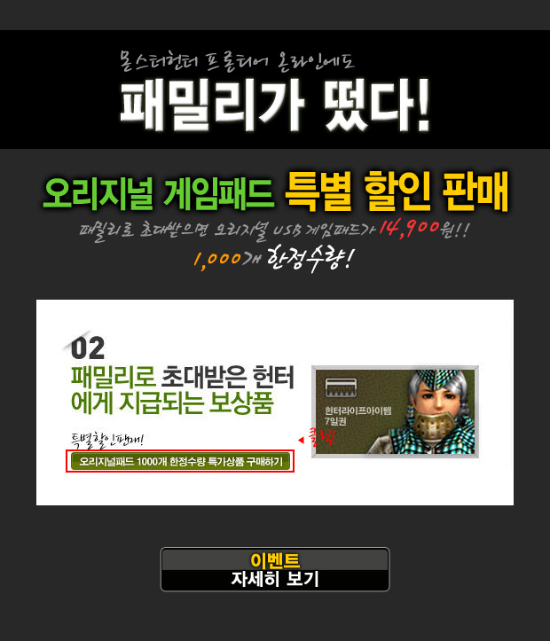 이벤트제목 몬스터헌터 패밀리가 떴다! - 오리지널 패드 특가판매