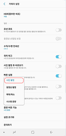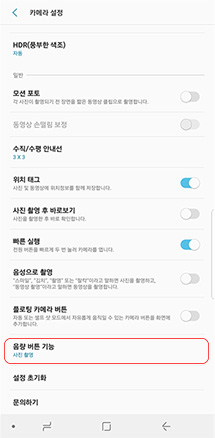 ※ 음량 버튼 기능이 '사진촬영'으로 설정되어야 리모컨으로 촬영할 수 있습니다.
