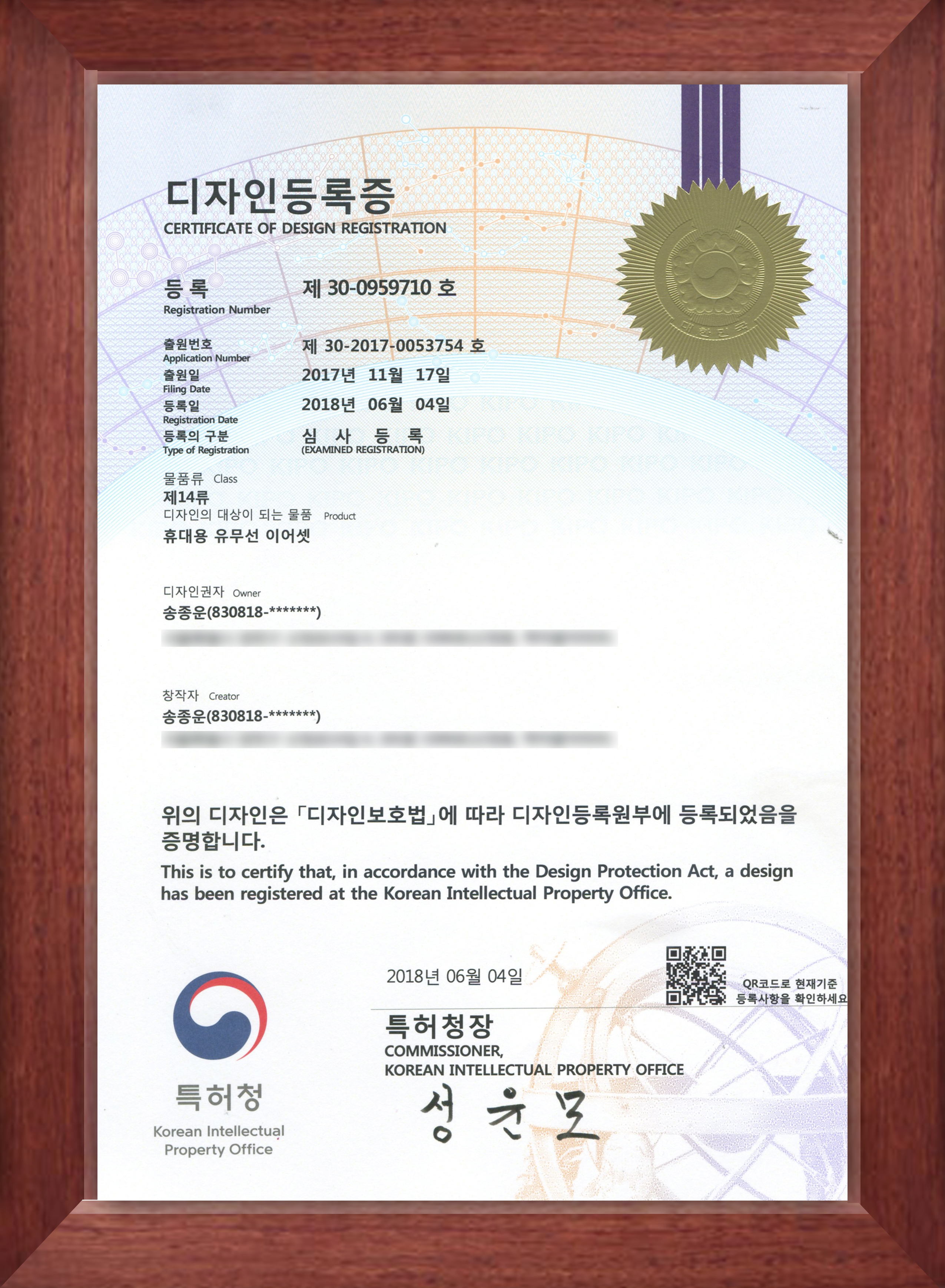 큐릭 신제품 인피니트 이어폰의 디자인 특허가 등록되었습니다.